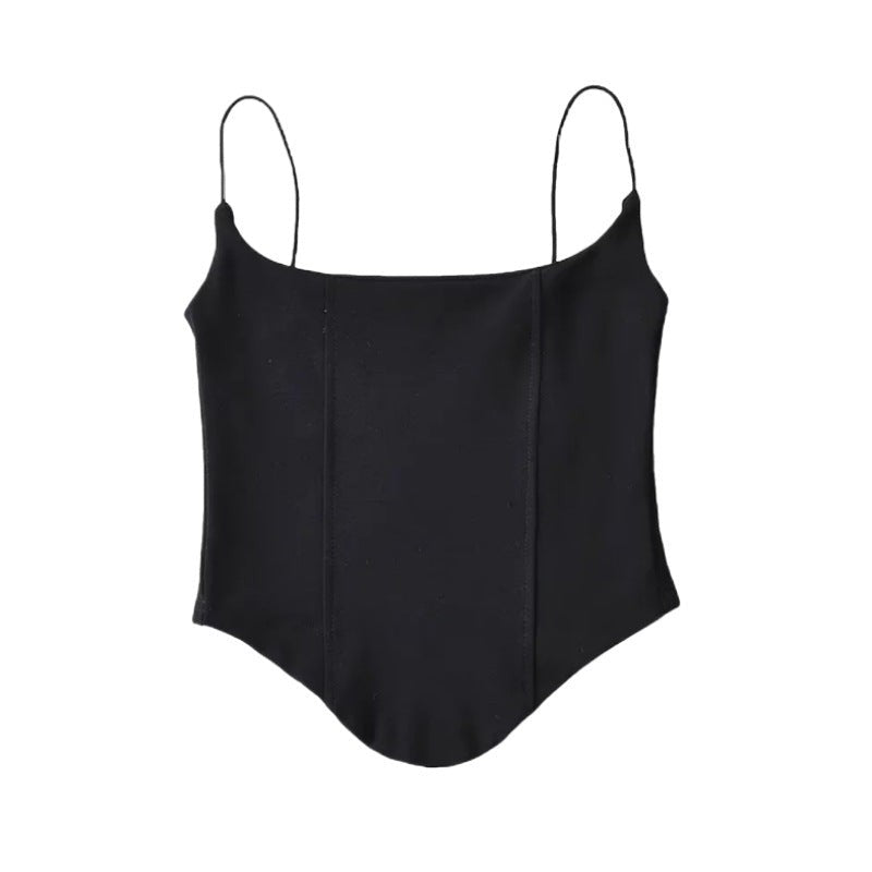 Minimalist yet striking, the high-waist cropped cami is designed to celebrate form and simplicity. Its soft arc-shaped hemline creates a flattering silhouette that feels both modern and effortless, while the body-hugging fit lends a touch of confidence to any look.