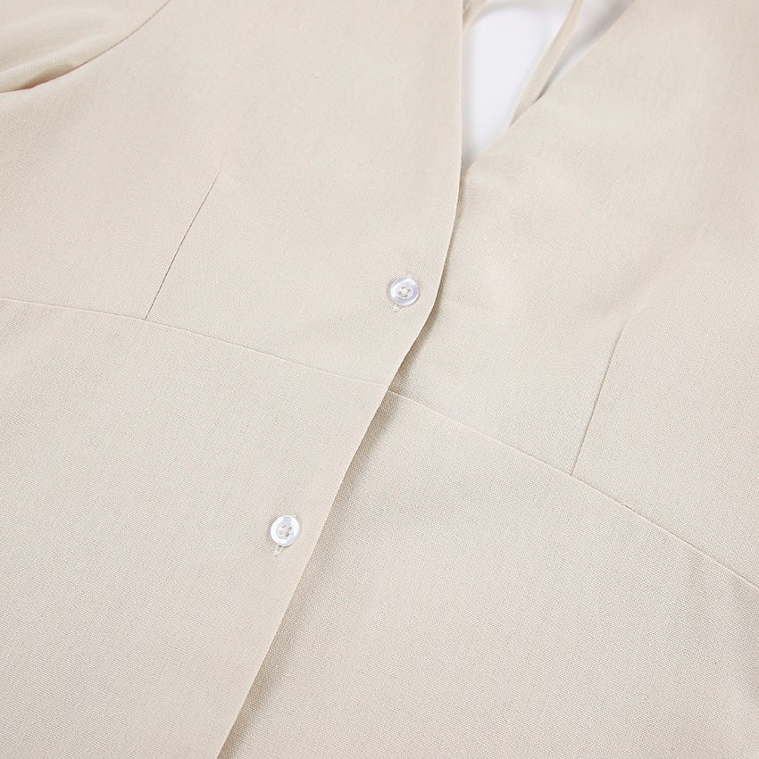 Its linen-blend texture lends a naturally elegant drape and subtle movement, combining breathable comfort with a polished, minimalist aesthetic. The off-white tone enhances its timeless versatility — effortlessly pairing with neutral or bold accessories for any occasion.